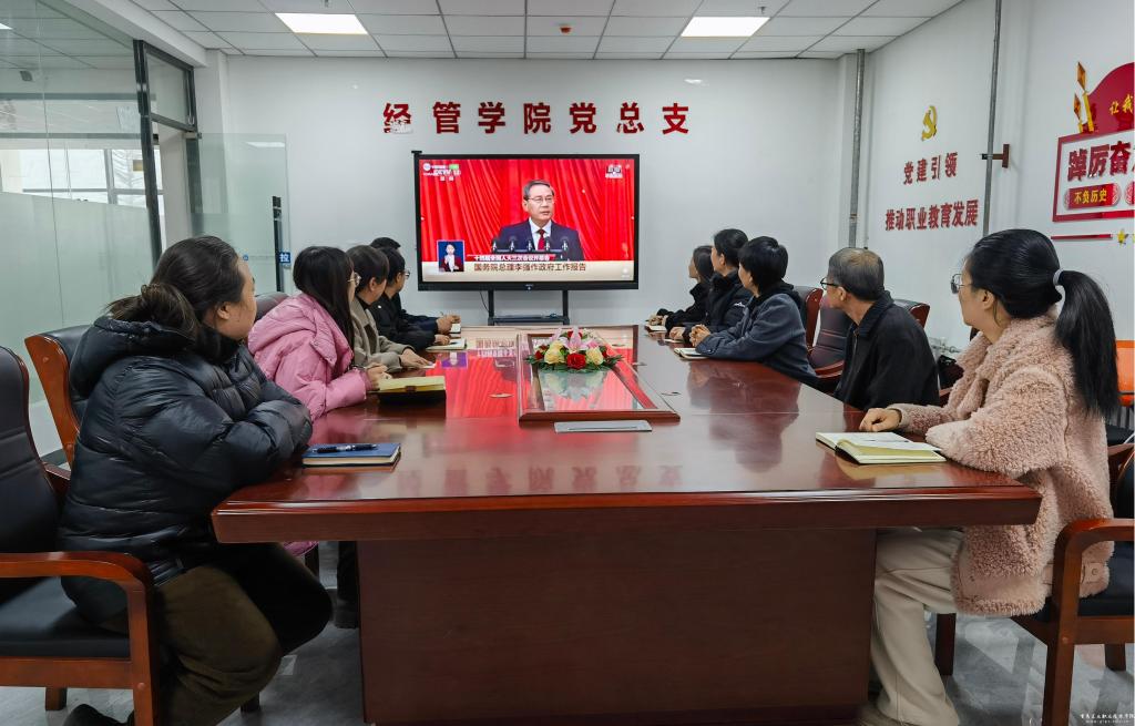 学校正处于抢抓重大发展机遇高质量发展的关键时期,我们要密切关注全国两会,进一步提高政治站位,强化政治担当,着力突出党建引领,通过两会凝聚共识、激发力量、提振奋发有为的精气神,坚持干字当头,求真务实,凝心聚力,开拓创新,奋勇争先,主动从教育科技人才一体推进的重大战略中找准发展定位和职责使命,落实立德树人根本任务,强化产教融合共同体建设,推动教育链、人才链与产业链、创新链深度融合,紧密贴合区域经济社会发展需求,提升人才培养的精准性,为教育强国建设贡献自己的力量。