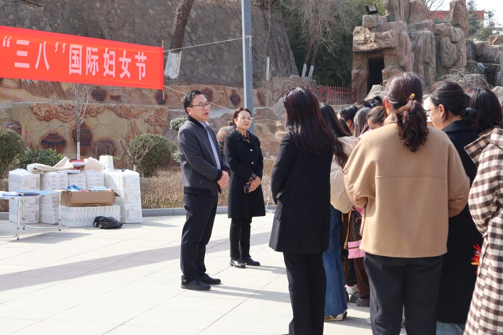 3月7日下午,彩陶园广场热闹非凡,活动启动仪式在此举行。党委副书记文云出席仪式并向女教职工们致以节日的祝贺,向辛勤耕耘在学校各个岗位的女教职工们送上节日的慰问。文云表示,女教职工们撑起了学校建设发展的“半边天”,她们是教书育人的先锋、敬业兴校的楷模、正风齐家的表率,始终与学校高质量发展同频共振,贡献了巾帼智慧和力量。