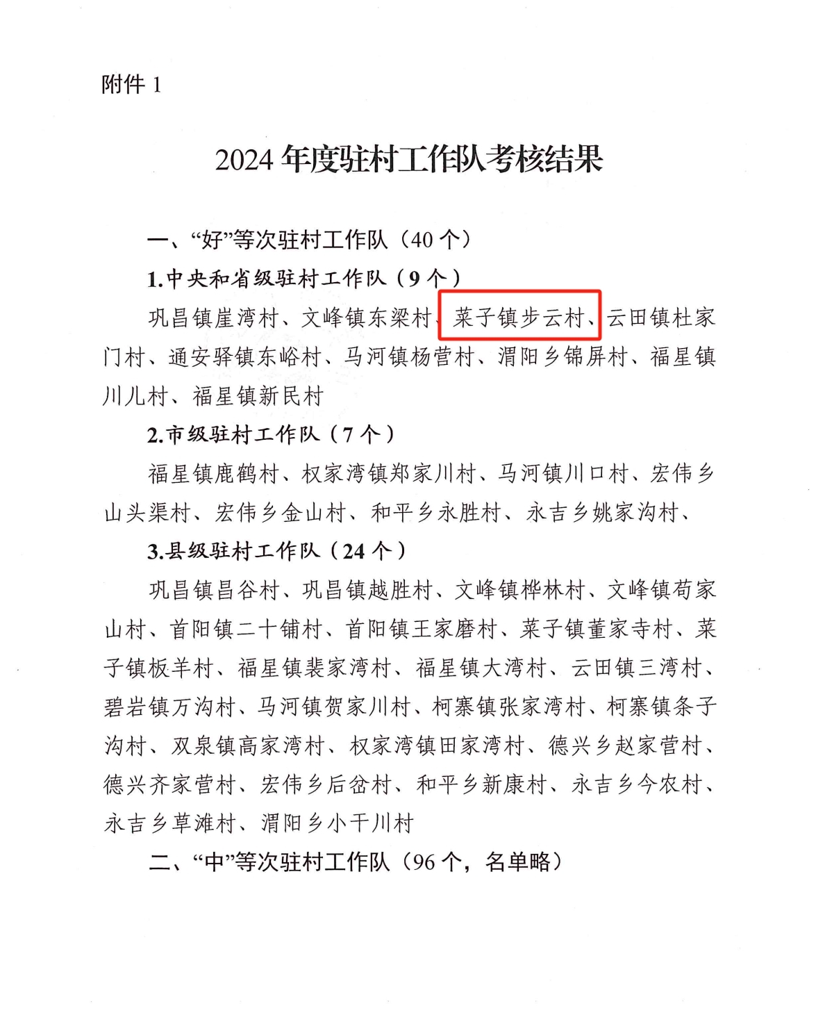 菜子镇步云村驻村工作队在全县帮扶工作队考核中获“好”等次,步云村工作队队员龙志伟获菜子镇“2024年度优秀帮扶干部”,步云村工作队队员赵利军、万山村工作队队员张晓东获年度考核“优秀”等次。步云村帮扶工作队报送的《电商助农乡村振兴——探索新路径》短视频作品成功入选教育部“乡村振兴 你我同行”典型案例短视频。