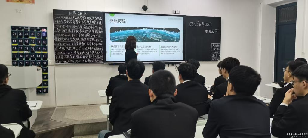 团支书借助精心制作的PPT和视频资料,向同学们详细介绍了世界水日和中国水周的由来与意义。触目惊心的全球水资源现状数据、因水资源匮乏引发的生活困境画面,让同学们深刻意识到水资源短缺已成为严峻的全球性问题。同时借助自媒体观看了《奇妙节水课》节目,同学们踊跃参与,观看后通过讨论对“身边的浪费水现象”“节水小窍门”等话题各抒己见。