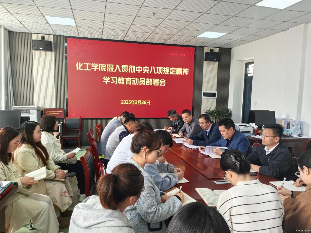 3月26日下午,化工学院召开深入贯彻中央八项规定精神学习教育动员部署会,传达学习校党委深入贯彻中央八项规定精神学习教育启动部署会议精神,对我院学习教育进行动员部署。化工学院党总支书记岳强主持会议,学院全体教职工参加。