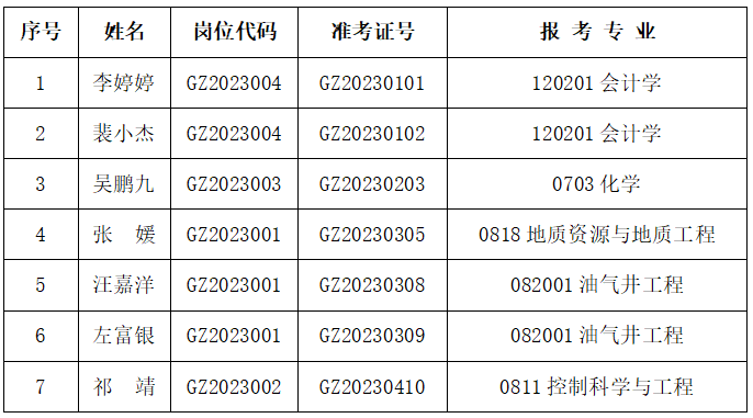根据笔试成绩和招聘岗位数,按照1:3的比例(未达到比例的,划定最低控制线),分数由高到低,确定参加面试的人选。具体人员如下。