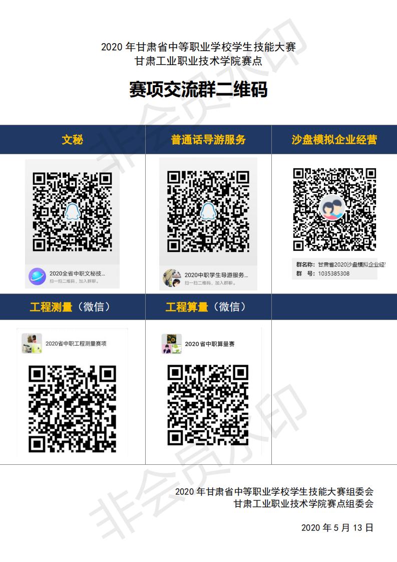【2020年全省中职学生技能大赛工职院赛点】赛项交流群