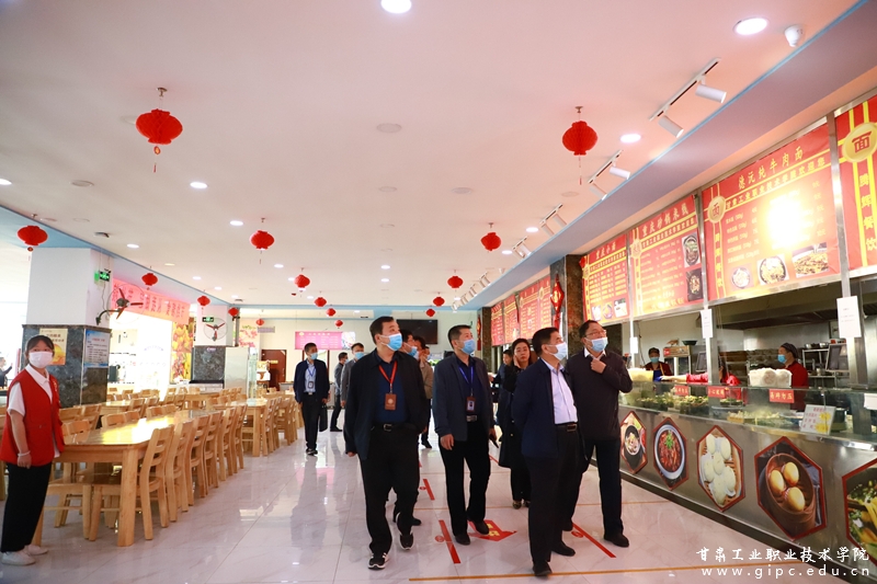 5月19日上午,省教育厅一级巡视员时宁国、发展规划处处长李连军、发展规划处副处长崔兴云一行莅临我校调研督查餐饮保障工作。校党委书记杨声,校党委副书记、院长安建平,相关部门负责人陪同督导检查。