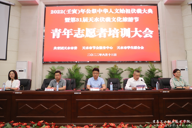 6月13日,2022(壬寅)年公祭中华人文始祖伏羲大典暨第31届天水伏羲文化旅游节青年志愿者培训大会在我校图书馆5楼报告厅举行。团市委副书记赵强、副院长曹惠清出席培训会,来自各二级学院的100名青年志愿者参加培训并宣誓。培训会由市学联秘书长何新宇主持。