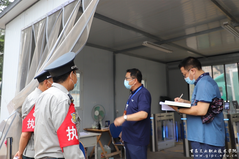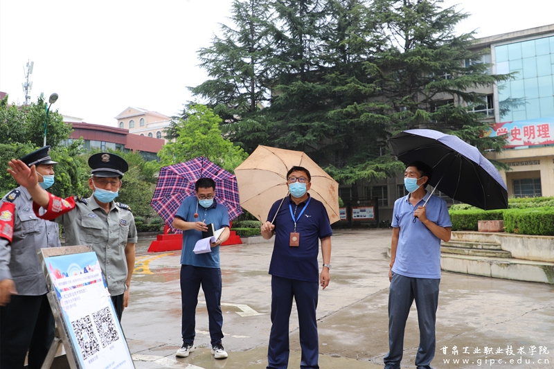 杨声一行首先来到学校西门和东门,检查了人员出入管控情况和西校门排水问题,要求保卫处暑假期间要按照学校疫情防控相关要求,继续严格执行校门管控制度,仔细做好进出人员登记工作,守牢校园疫情防控第一道防线。