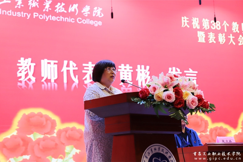 教师代表、马克思主义学院常务副院长黄彬发言,她表示,将继续努力做有理想信念、有道德情操、有扎实学识、有仁爱之心的“四有”好老师,为学校改革发展贡献自己的力量。校学生会轮值主席、地质学院钻探2132班滕文钰同学以视频形式为全体教职员工送上祝福。