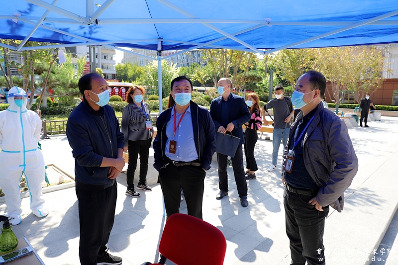 9月26日,党委副书记、院长安建平带领相关部门负责同志,先后深入天水南站、火车站、长途汽车站等校外迎新点,校内抗原检测点、核酸检测点、食堂等重点区域和天水卫校办学点等地,检查指导学生返校和疫情防控工作,详细了解学生入校流程,看望慰问迎新工作人员、核酸检测人员、志愿者和新生,认真查看各环节疫情防控落实情况。