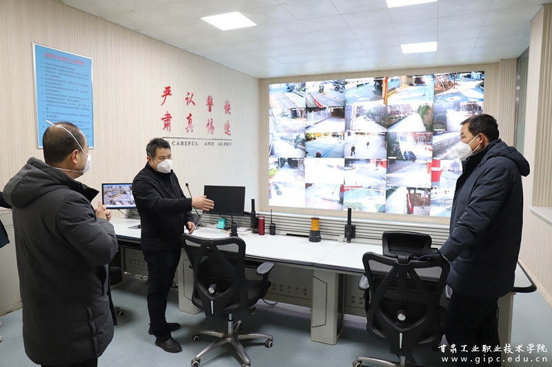 刘乃君一行对校园监控中心、学校门卫值班室、公寓值班室、楼宇消防设施等重点区域进行了全面检查。