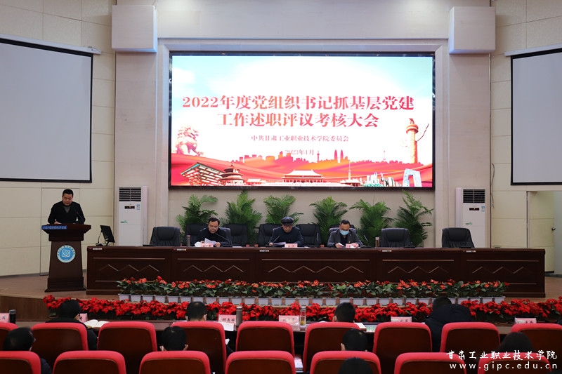 1月13日,pg娱乐电子游戏党委召开2022年度党组织书记抓基层党建工作述职评议考核大会,校党委书记杨声出席会议并讲话,市委组织部人才工作科科长贾军焕到会指导,校党委班子其他成员,各支部述职对象、基层党员干部及“两代表一委员”参加。会议由校党委副书记、院长安建平主持。