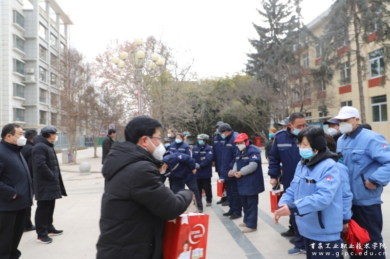 春节将至,冬寒情暖,学校党委心系学校寒假期间工作值守人员。1月17日,党委书记杨声,党委副书记、院长安建平,党委副书记刘乃君,副院长胡森林、曹惠清,在党政办公室主任周晓明、国资后勤处处长万鑫、保卫处处长张仲祥等人的陪同下,慰问了国资后勤处和保卫处寒假期间工作及值守人员,为他们带去了学校的关怀与温暖,并致以新春祝福。