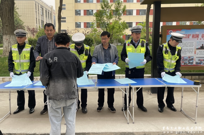 为深入开展“一盔一带”安全守护行动,从源头保障师生员工的出行安全,营造浓厚的交通安全宣传氛围,4月20日,麦积区公安交警支队在我校开展“一盔一带 安全常在”主题宣传活动。副院长曹惠清现场出席活动。