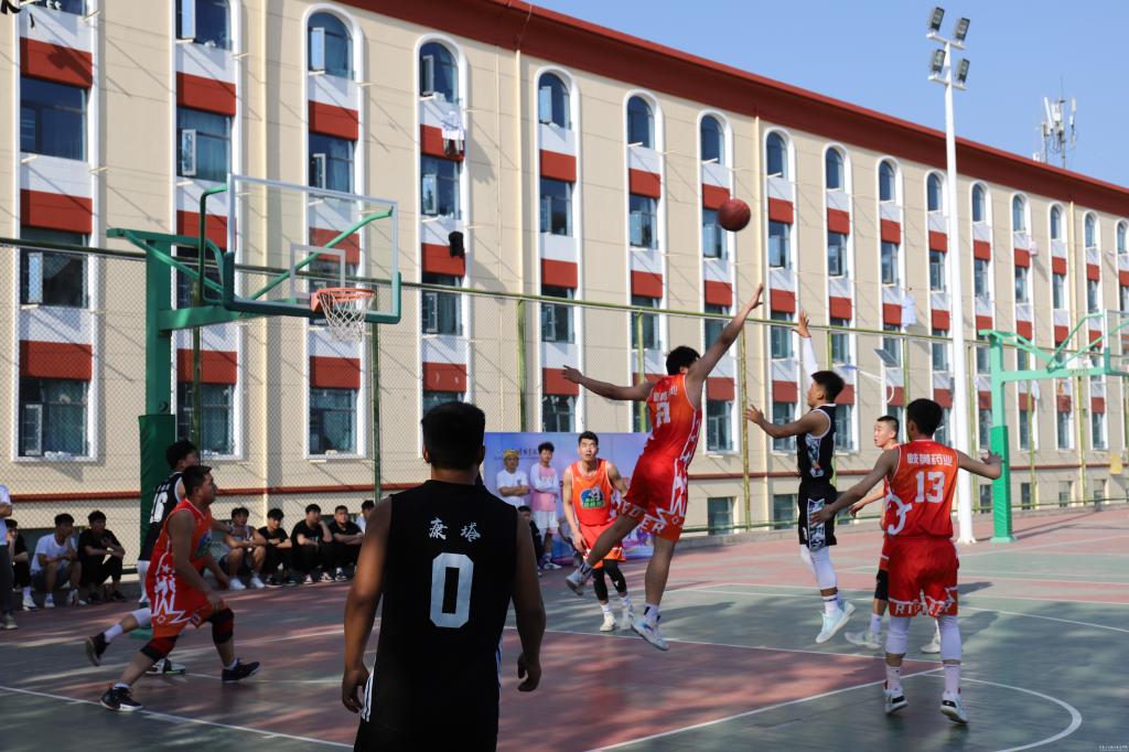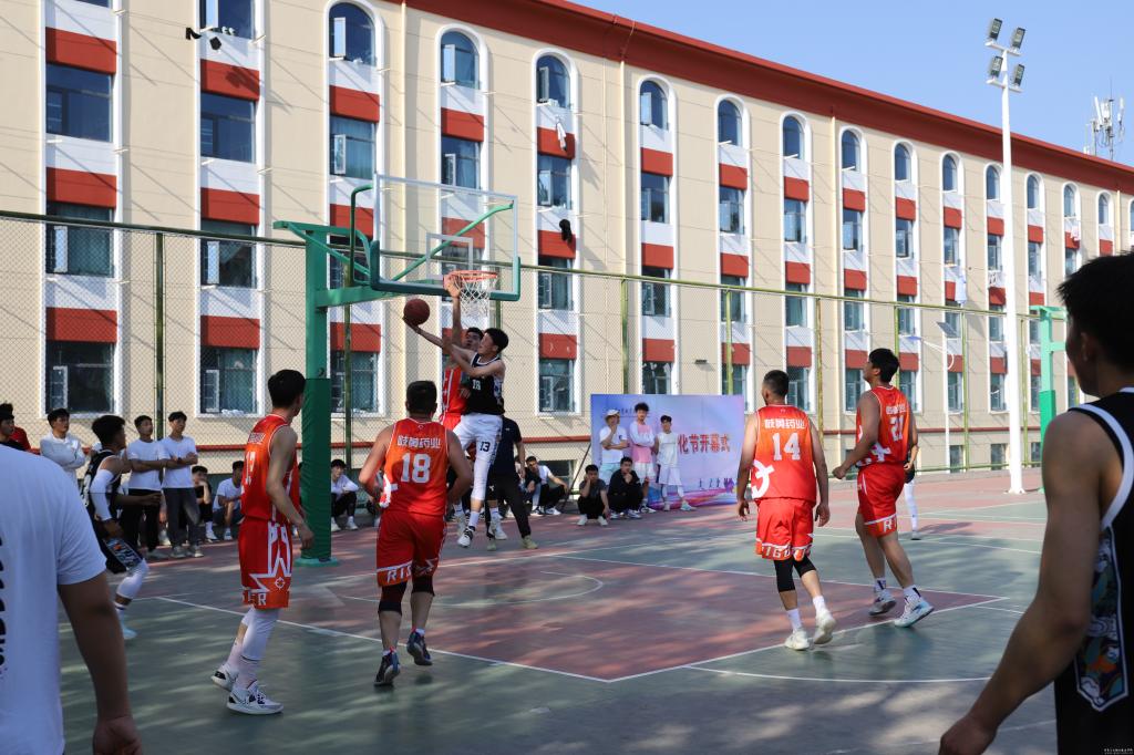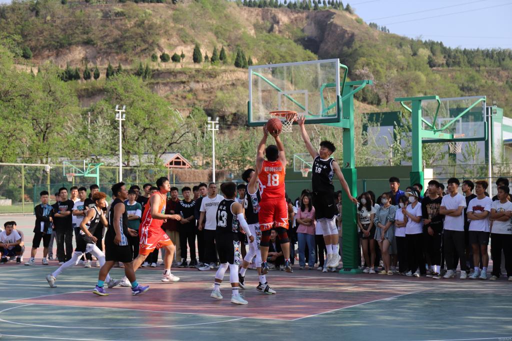 开幕式结束后,与会领导和同学们共同观看了昊峰集团篮球队与我校篮球队的揭幕战。比赛过程中,双方队员奋力拼搏、防守有度,比赛激烈精彩,特别是昊峰集团篮球队精湛的球技赢得了场外观战同学的阵阵喝彩。