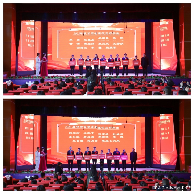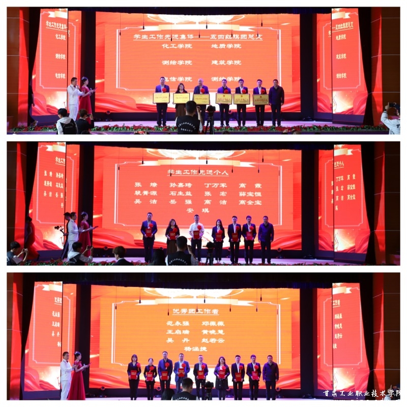 活动在颁奖环节和精彩节目的交替中有序进行。本次受到表彰的先进集体和优秀个人有三好学生标兵、三好学生、优秀学生干部标兵、优秀学生干部、优秀共青团干部、优秀共青团员、优秀楼层长、优秀公寓管理员、优秀学生社团、文明宿舍、文明公寓、优秀班集体、五四红旗团支部、优秀学生组织、优秀学生分会、优秀班主任、优秀社团指导老师、学生工作先进个人、优秀团工作者、学生工作先进集体、五四红旗团总支、2022年度省级高校三好学生、2023届甘肃普通高校优秀毕业生、国家励志奖学金、国家奖学金获得者。他们在学校跨越式发展中以坚定的理想信念、旺盛的青春活力、强烈的进取意识和奉献精神,在实施“十四五”规划承上启下的关键一年,为助推我校高质量建设发展发挥了先锋模范的带动作用。