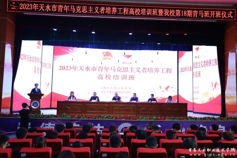 共青团天水市委书记刘云桂,学校党委副书记刘乃君,团市委副书记侯强强、办公室主任王滨,甘肃机电职业技术学院团委书记陈栋,甘肃林业职业技术学院团委副书记任俞新,我校马克思主义学院、校团委相关负责人等出席开班仪式。全体青马培训班学员、“1231工程”学生、入党积极分子等共计750余人参加。开班仪式由我校团委书记黄晓慧主持。