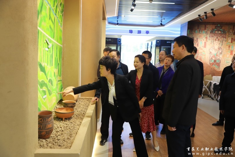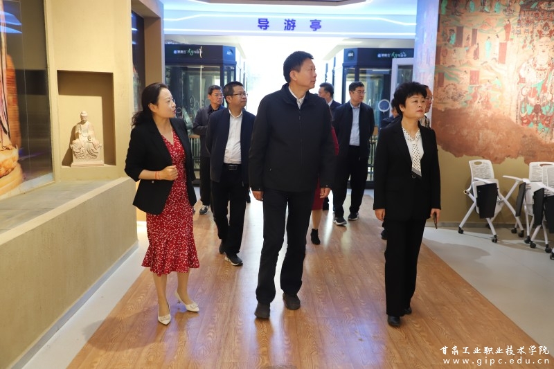 在新商科楼,调研组一行着重参观了经管学院陇货甘味天水特色馆,重点了解了天水的特色产品及具有悠久历史文化的文创产品。费志荣就学生实训、直播带货效益及校企合作问题与工作人员进行亲切交谈。