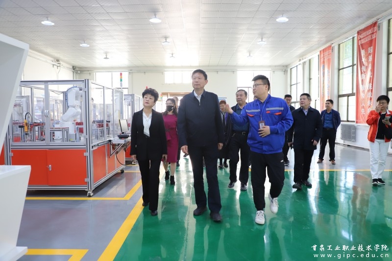 在电信学院校企合作及工业机器人实训基地,调研组了解了学生技能大赛项目、实训内容等方面的情况。