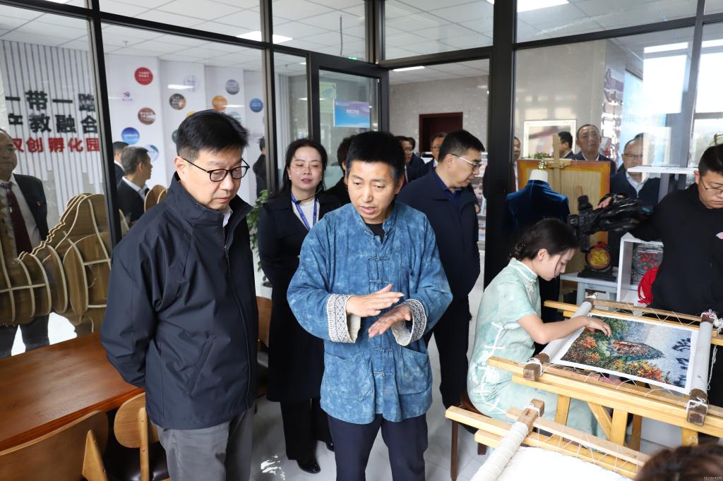 张锦刚实地参观了地质园、双创学院、非遗大师工作室、智慧旅游实训基地等,对学校在产教融合、校企合作,订单式人才培养模式等方面表示认可,就进一步做好工作提出具体要求。