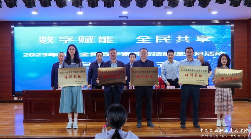 会上,天水市委副书记杨晓锋,市委宣传部副部长、网信办主任徐东明为我校创新创业学院、天水市科技馆、天水电信公司、天水移动公司、天水联通公司5家首批天水市全民数字素养与技能培训基地授牌。