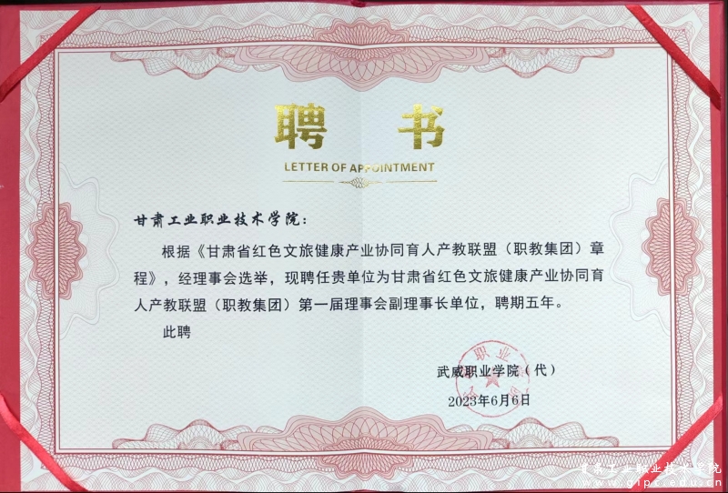 今年是全面贯彻落实党的二十大精神的开局之年,也是甘肃省红色文旅健康产业协同育人产教联盟(职教集团)的履新起步之年,pg娱乐电子游戏作为集团副理事长单位,将积极加强与职业院校、企事业等单位之间的交流合作,努力为红色文化、健康中国、健康甘肃建设,为我省红色文旅健康产业发展以及职业教育高质量发展做出应有的贡献。