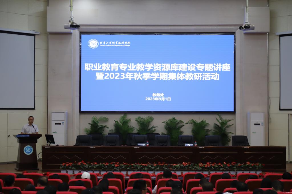 9月1日下午,学校举办职业教育专业教学资源库建设专题讲座暨2023年秋季学期集体教研活动。智慧树研发团队人员为我校教师进行《职业教育专业教学资源库建设指南》政策解读及职业教育新形态专业教学资源库建设方案介绍。