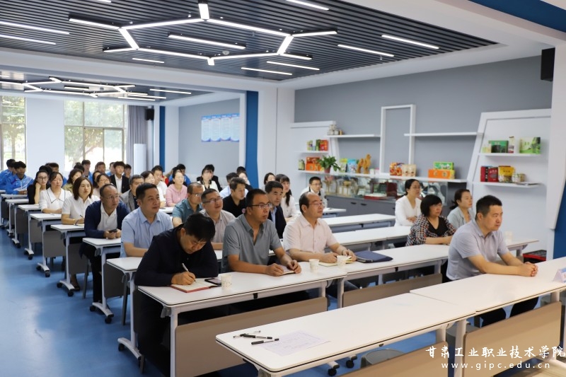 我校在智慧旅游C+实训室设分会场,党委副书记刘乃君出席会议,组织人事部、教务处、马克思主义学院、双创学院、公共课教学部、各二级学院负责人以及各教学单位教师代表和学生代表参加会议。
