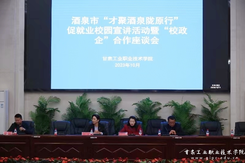 10月15日上午,酒泉市人力资源和社会保障局到我校举办2023年“才聚酒泉陇原行”校园宣讲活动,酒泉市新能源及装备制造等30多家重点企业参加宣讲活动。