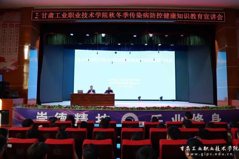 为有效防控易发传染病在校园的流行蔓延,帮助全体同学掌握秋冬季常见疾病预防方法,树牢做自己健康第一责任人的责任意识,10月27日下午,学工处在大学生活动中心举办《秋冬季常见传染病预防》知识讲座。讲座邀请麦积区疾控中心工作人员主讲,学工处处长李东浩主持,各二级学院学生代表700余人参加,