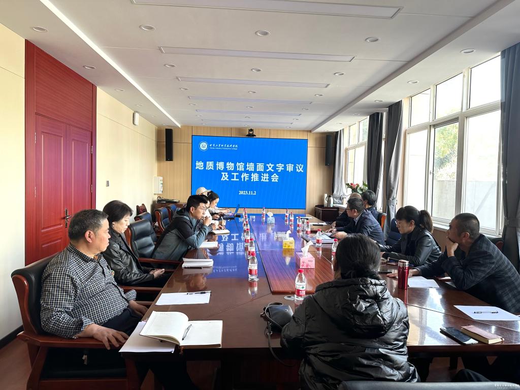 11月2日下午,副院长王利军主持召开地质博物馆墙面文字审议及工作推进会。相关专业教师、地质博物馆全体成员及地质博物馆室内建设单位人员参加。