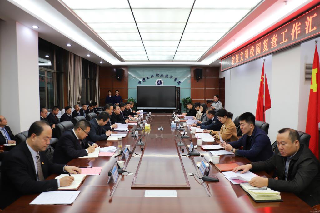实地查看结束,学校在图书馆4楼会议室召开文明校园复查工作汇报座谈会。