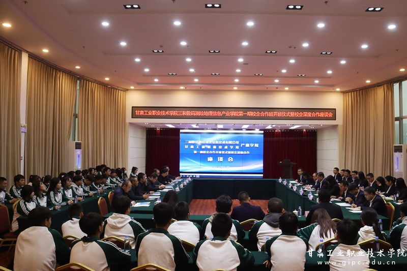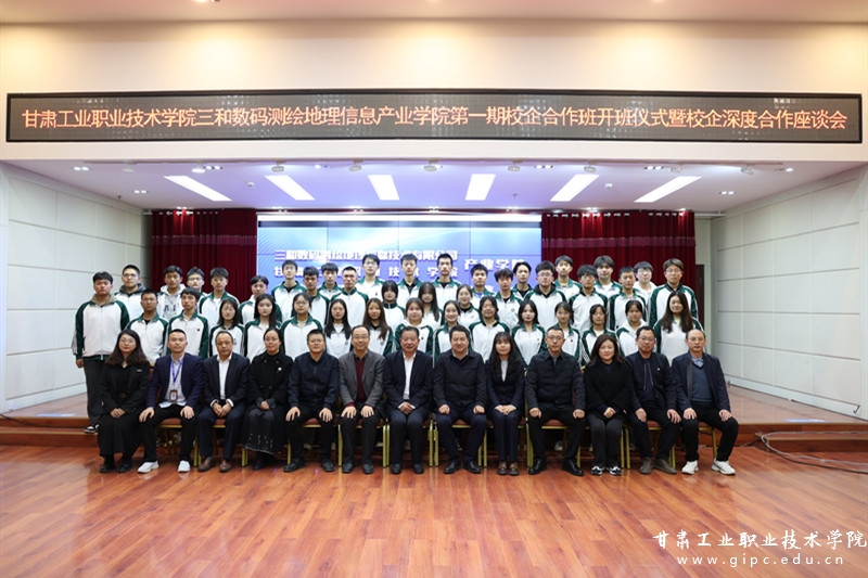 为持续巩固校企深度合作办学成果,推动“三抓三促”行动走深走实,11月10日,pg娱乐电子游戏三和数码测绘地理信息产业学院第一期校企合作班开班仪式暨校企深度合作座谈会在三和数码有限公司召开。校党委副书记刘乃君出席并致辞,三和数码测绘地理信息技术有限公司党总支书记靳娟丽、副总经理吕志伸及主要部门负责人,我校质量管理处、教务处、我院相关负责人和第一期校企合作班42名同学参加。活动由中国建材地勘中心甘肃总队副总队长、三和数码董事长陈重奎主持。