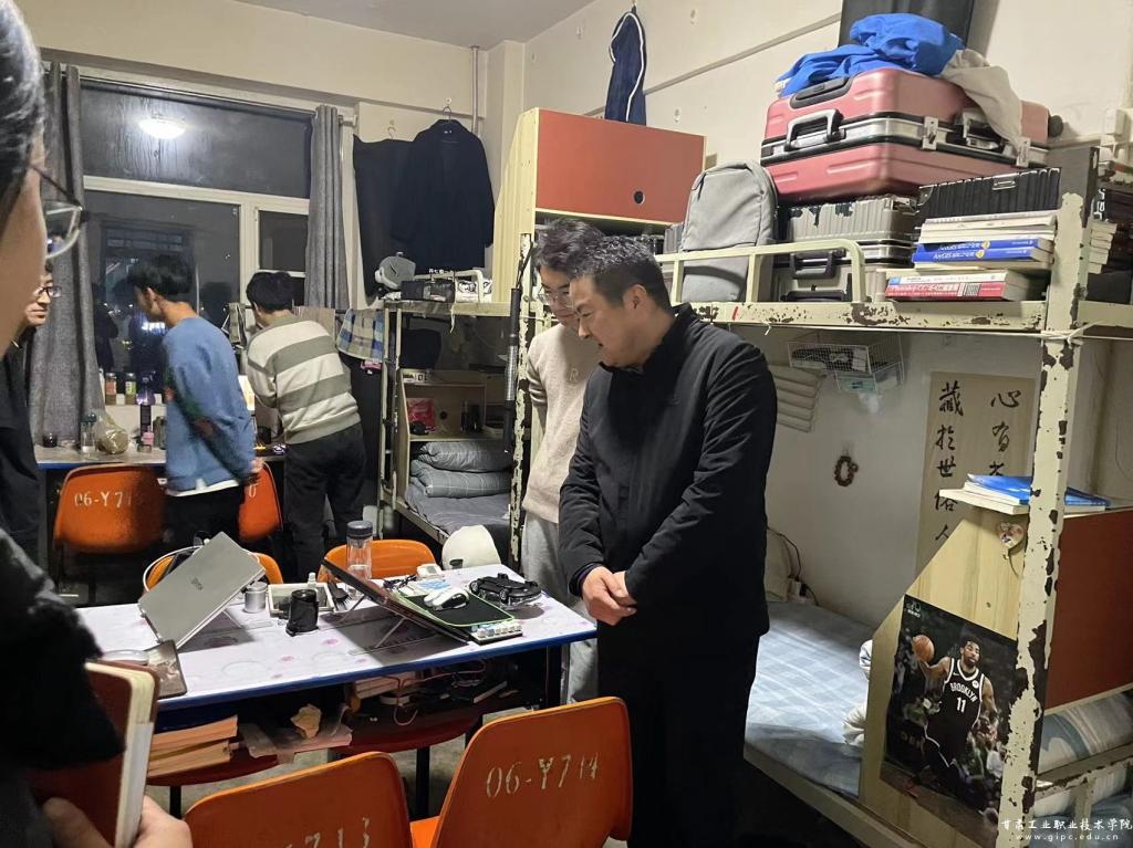 座谈结束后,刘乃君在我院学管工作人员的陪同下,走访学生公寓,全面细致地了解了学生在生活、学习等多方面的情况,重点关注公寓的用电安全,耐心倾听同学们的反馈,对学生提出的问题现场给予了答复。