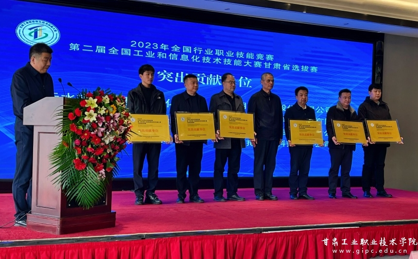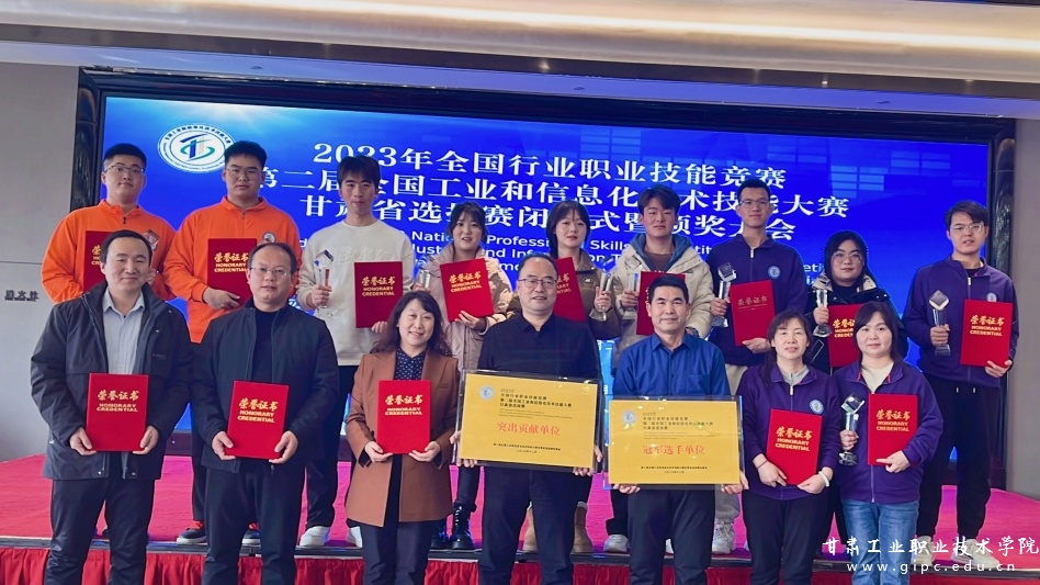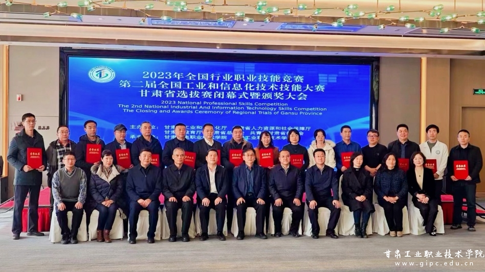 岁末获喜讯,佳绩贺新年!12月29日,2023年全国行业职业技能竞赛——第二届全国工业和信息化技术技能大赛甘肃省选拔赛闭幕式暨颁奖大会在甘肃兰州召开,副院长周晓明带领获奖师生参加颁奖大会。我校喜获多项荣誉,为新的一年鼓舞了士气、增添了喜气。