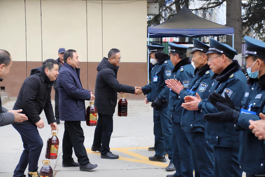 校领导一行先后来到楼宇值班室、学校门房、公寓值班室、锅炉房等处,看望正在值班的一线工作人员。每到一处都与大家亲切交谈,感谢他们为保障学校相关工作正常运转付出的辛勤劳动,代表学校向他们拜年,感谢他们舍小家顾大家,用心用情做好寒假尤其是春节期间的服务保障工作,为大家提供更加优质、更加暖心的服务,让在校教职员工度过一个平安健康、欢乐祥和、温馨暖心的春节假期。
