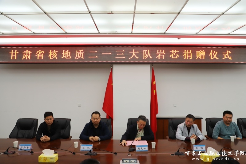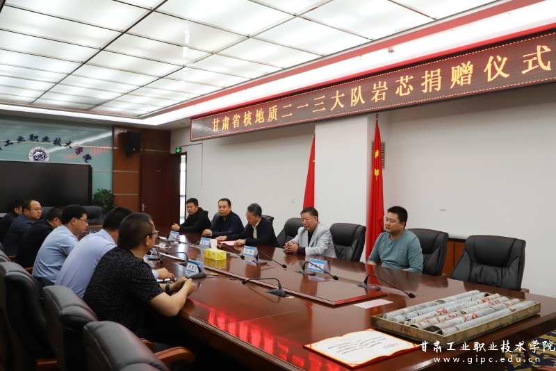 4月23日,甘肃省核地质二一三大队向我校地质学院捐赠一批地质钻探岩芯,捐赠仪式在图书馆四楼会议室举行。甘肃省核地质二一三大队大队长周定一、副大队长孙明一行5人及我校副院长王利军、曹惠清出席,地质学院班子成员及相关专业负责人、学生代表参加。