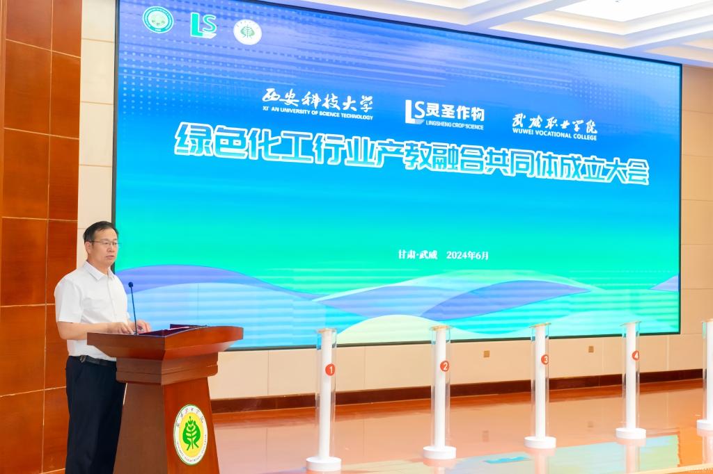 6月21日,绿色化工行业产教融合共同体成立大会在武威职业学院举行,我校当选为副理事长单位。此次大会由内蒙古灵圣作物科技有限公司、西安科技大学和武威职业学院牵头,联合科研院所、本科院校、中高职院校、行业协会及上下游企业等52家单位共同成立。