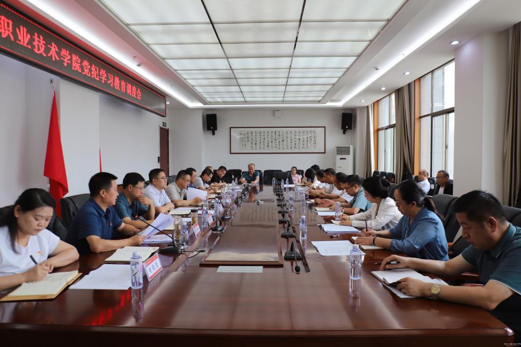 7月22日上午,党委书记坚葆林主持召开党纪学习教育调度会。党委副书记、院长安建平及其他党委班子成员出席,党委工作部门主要负责同志,工会、团委主要负责同志,各直属党支部书记,二级学院党组织主要负责同志参加。