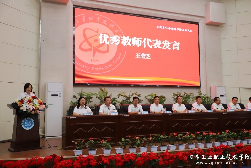 优秀教师代表王莹芝从“开拓者,我们最勇敢”“奋斗者,我们最青春”“前行者,我们最无畏”三个方面,号召全体教师携手并进、砥砺前行,躬身践行教育家精神,牢记为党育人、为国育才的初心使命,传承老教师的优良传统,把经验转化为前行的动力,投身职业教育、培育技能人才,在学校高质量发展的道路上一起向前奔跑。