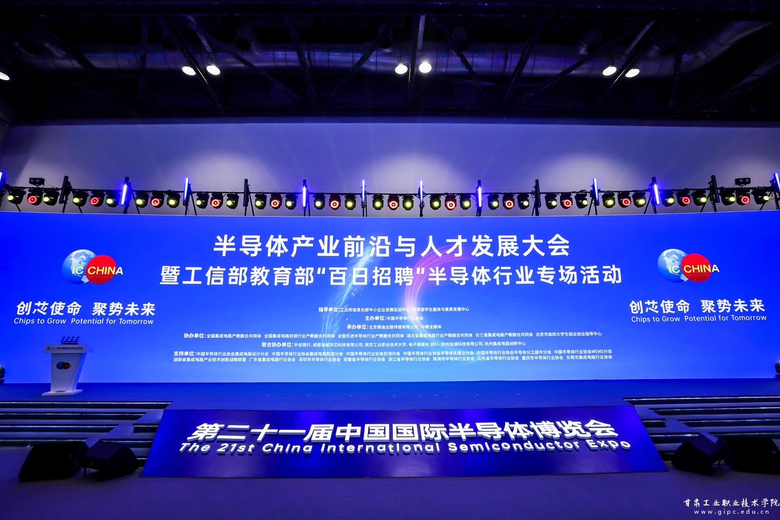 2024年11月19日—20日,由工业和信息化部中小企业发展促进中心、教育部学生服务与素质发展中心指导,中国半导体行业协会主办、全国集成电路封测行业产教融合共同体等协办的半导体产业前沿与人才发展大会暨工信部教育部“百日招聘”半导体行业专场活动在北京国家会议中心隆重举行。我校作为此次会议的协办单位,学校党委书记坚葆林带队、电子信息学院负责人等一行4人参会并参与主要活动。