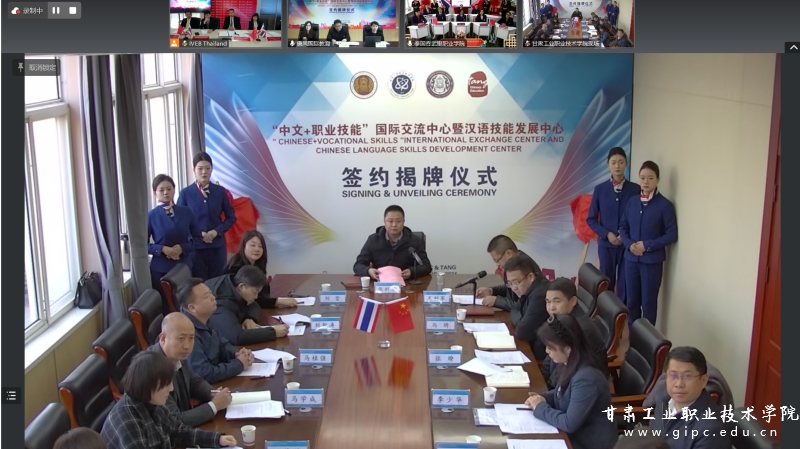 泰国曼谷职业教育中心主任宋鹏·初通、副主任萨克达·马于克乔蒂,吞武里职业学院校长克里蒂亚·旺霍姆、资源管理部副校长帕里尼亚·英达威、教务部副校长帕里查·布尼亚卡拉查,北京唐风国际教育集团中国业务执行总裁庄雷等线上出席活动,pg娱乐电子游戏党委副书记、院长张利军,副院长王利军,办公室主任马骋等出席会议,会议由王利军主持。