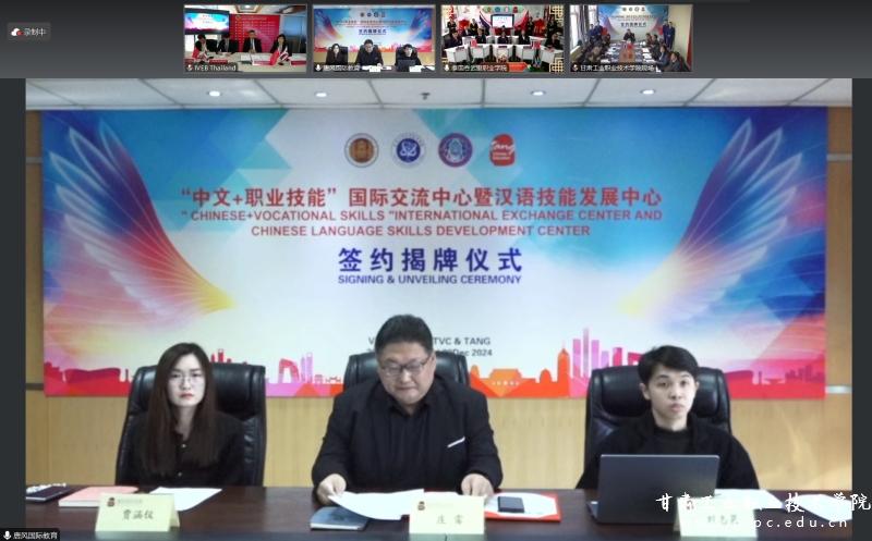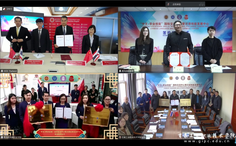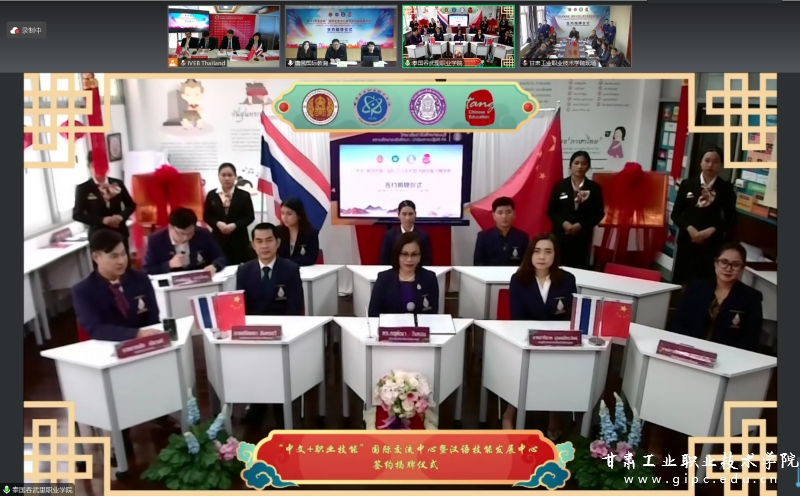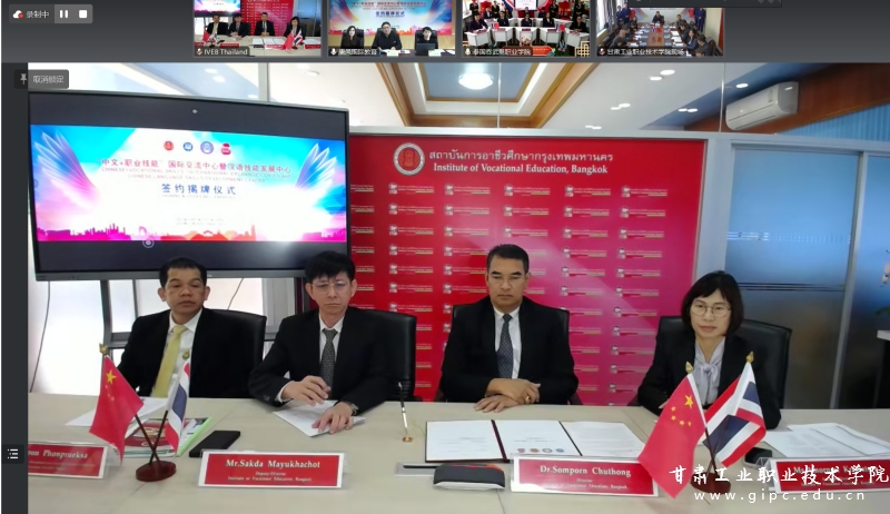 在热烈的掌声中,pg娱乐电子游戏与泰国曼谷职教中心、吞武里职业学院、唐风国际教育集团四方共同签署项目合作框架协议。与会领导嘉宾共同在线上为“中文+职业技能”国际交流中心和“汉语技能发展中心”揭牌。