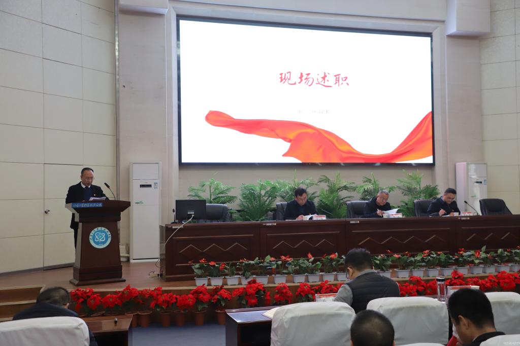 1月17日,中共pg娱乐电子游戏委员会召开2024年度党组织书记抓基层党建工作述职评议考核大会。天水市委宣传部副部长王刚出席会议并讲话,学校党委书记坚葆林及其他在家党委领导班子成员、各党组织书记、部门党员干部参会。会议由党委副书记文云主持。