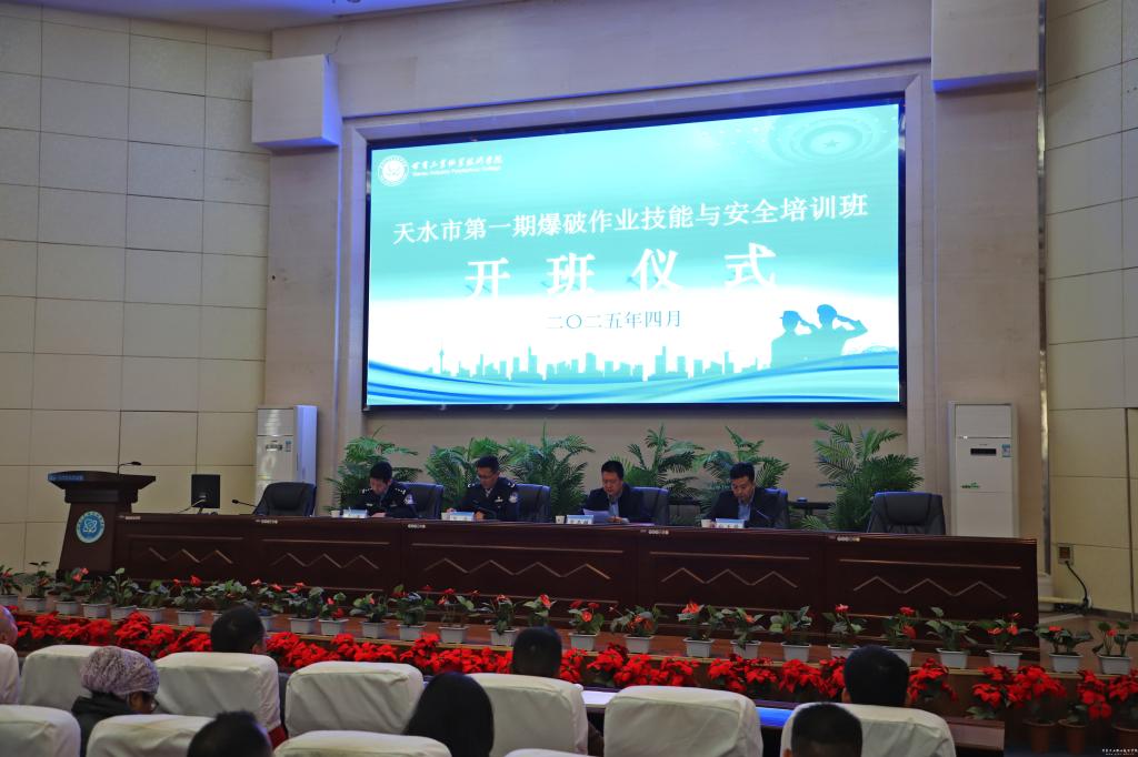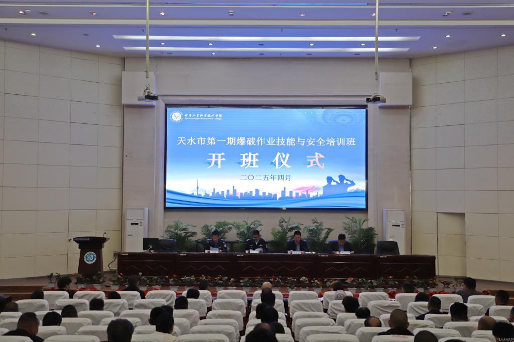 为进一步提升爆破作业人员的专业技能和安全意识,规范民用爆炸物品管理,保障安全生产,4月16日上午,由天水市公安局主办,pg娱乐电子游戏、天水天强民爆高科技有限公司承办的“天水市2025年第一期爆破作业技能与安全初次培训班”在我校顺利开班。天水市公安局党委委员、副局长张涛,市公安局治安支队队长曹勇,天水天强民爆高科技有限公司经理白玉锋出席开班仪式,我校党委委员、纪委书记、监察专员贾昌麟出席开班仪式并致开幕词。