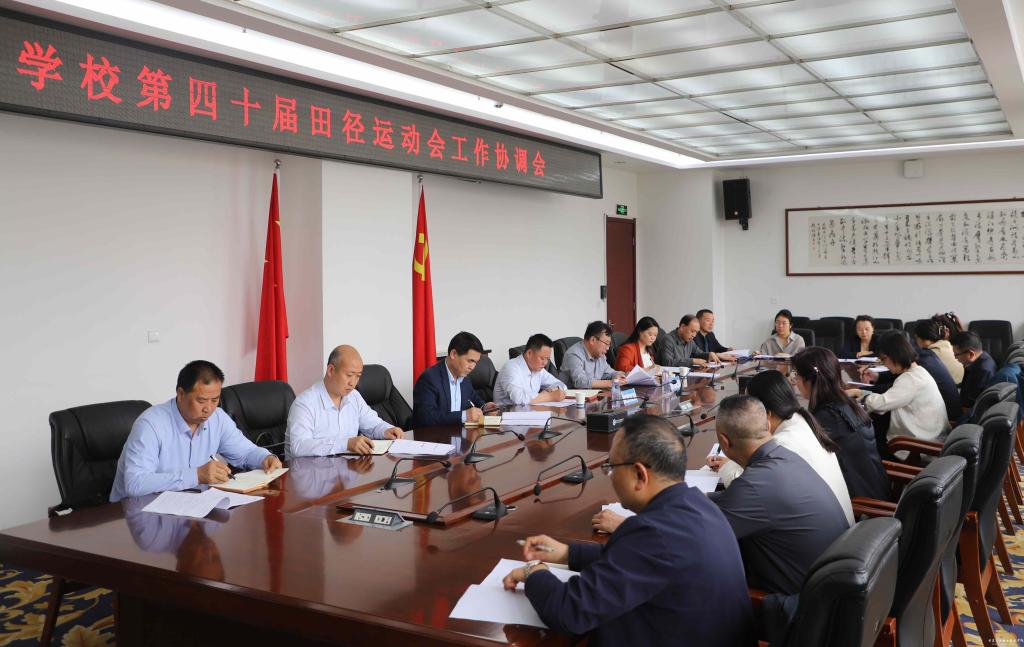 4月18日下午,学校在图书馆四楼会议室召开第四十届田径运动会工作协调会。党委副书记、院长张利军出席会议并讲话,学校各相关部门和二级学院负责人参会。会议由党委副书记文云主持。