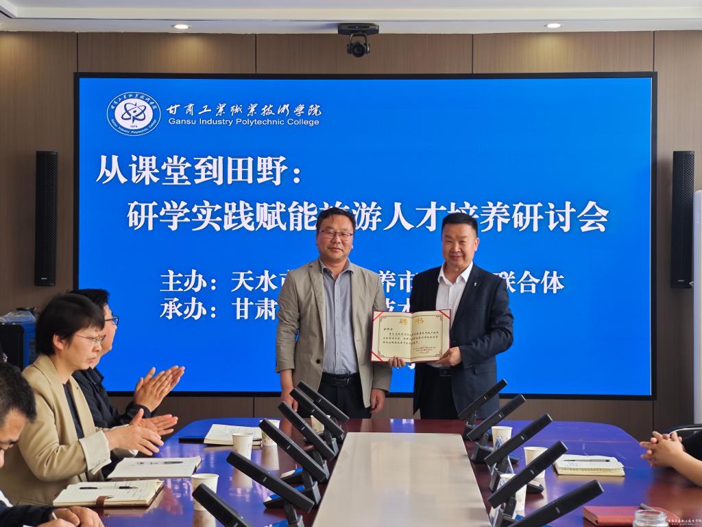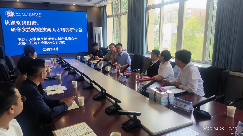 为深化职业教育改革,推进研学旅行人才培养体系建设,4月29日,由天水市文旅康养市域产教联合体主办,我校承办的“从课堂到田野:研学实践赋能旅游人才培养”专题研讨会成功举办。党委副书记文云出席,旅游学院班子成员、历任书记、院长、各专业带头人、青年教师代表参加。