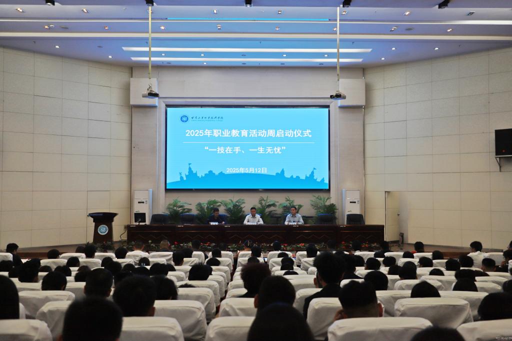 为深入贯彻落实《教育强国建设规划纲要(2024—2035年)》和三年行动计划,推动加快建设职普融通、产教融合的职业教育体系,培养大国工匠、能工巧匠、高技能人才,5月12日下午,学校在图书馆五楼智敏报告厅举行2025年职业教育活动周启动仪式。党委副书记、院长张利军出席,副院长胡森林主持,各二级学院负责人和学生代表参加。