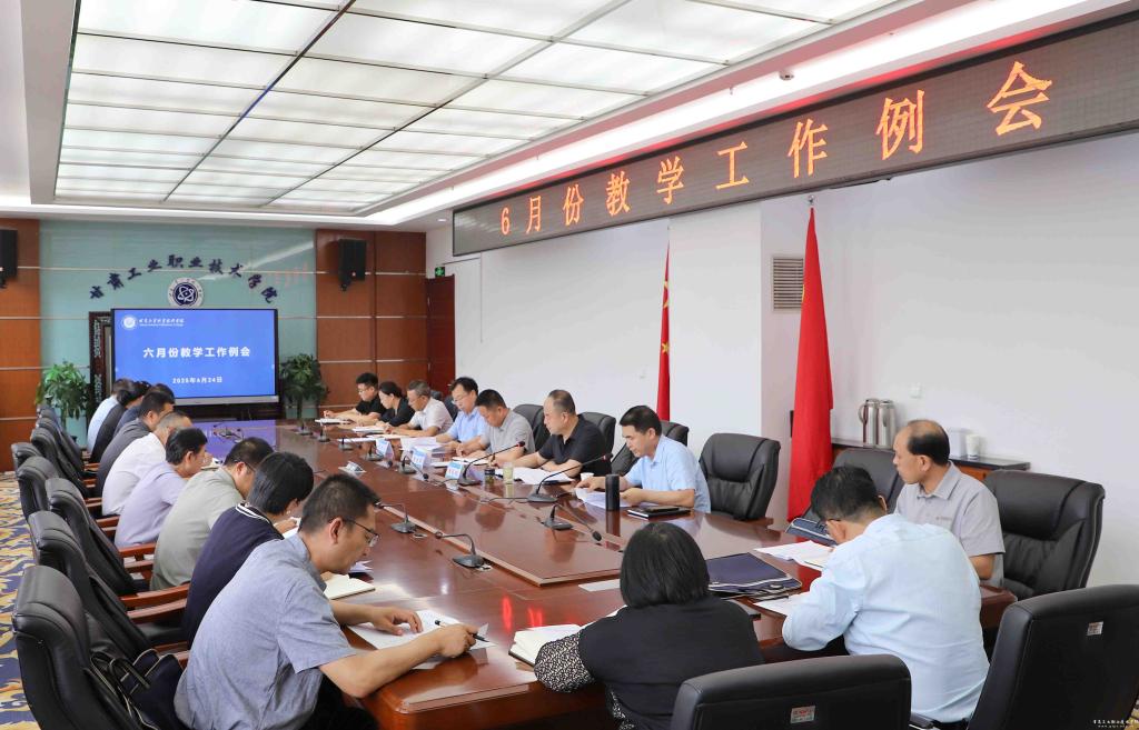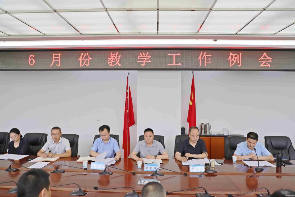 6月24日下午,我校在图书馆四楼会议室召开六、七月份教学工作例会,总结近期教学工作情况,部署期末及暑期重点任务。党委副书记、院长张利军,副院长周晓明、张鸿飞出席会议,教务处、质量管理处及各二级学院负责人参会。会议由副院长周晓明主持。