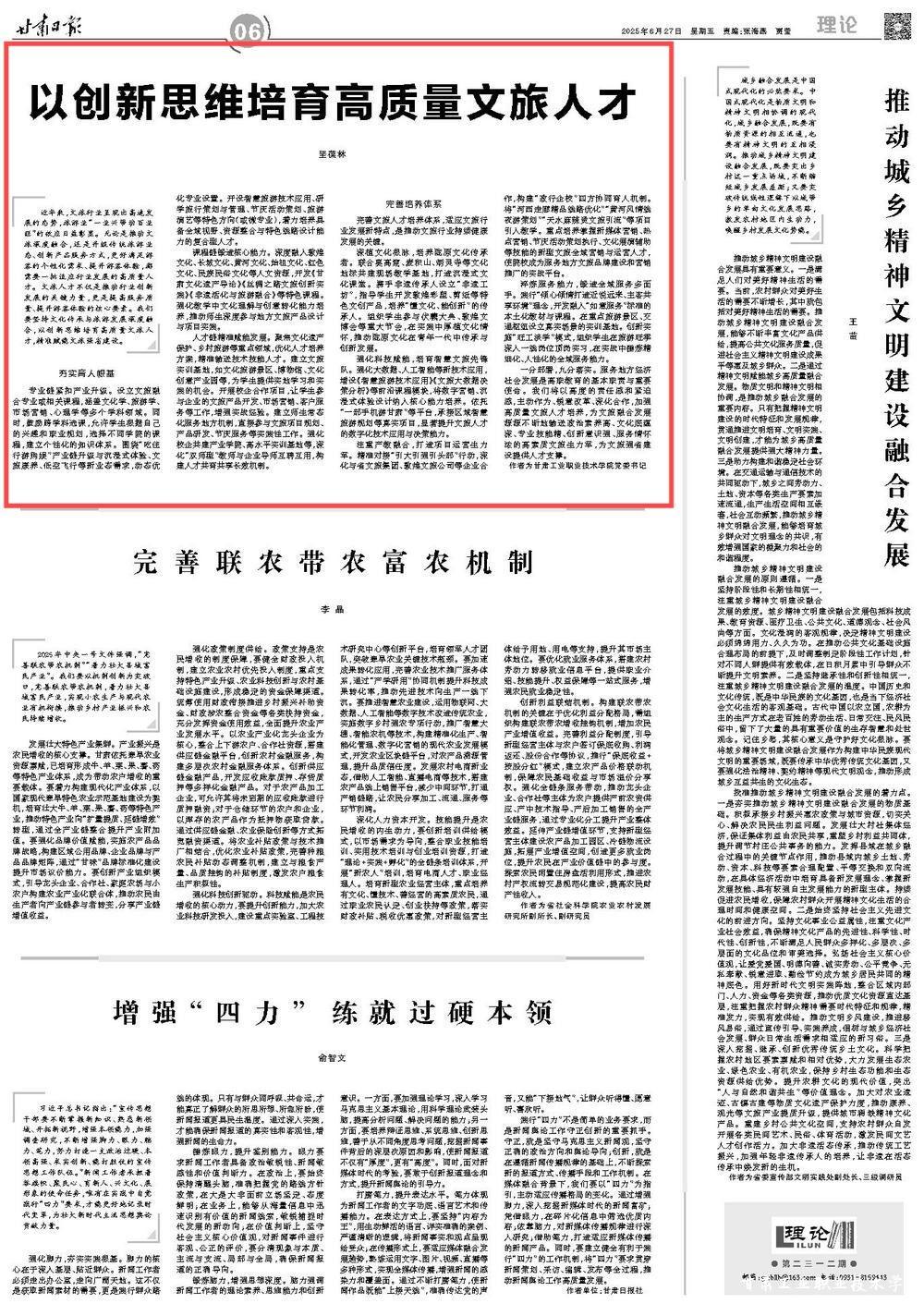 【甘肃日报】《甘肃日报》刊发党委书记坚葆林署名文章:以创新思维培育高质量文旅人才