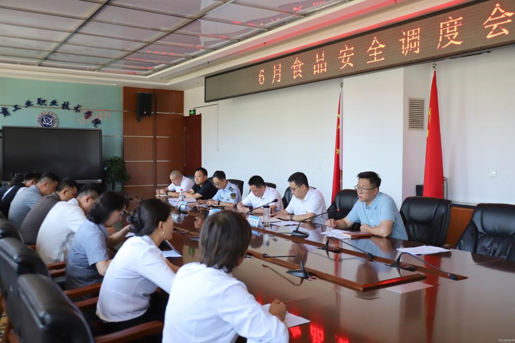 6月30日下午,学校在图书馆四楼会议室召开六月份食品安全月调度会议,党委副书记、院长张利军出席,花牛镇市场监督管理所副所长郭凯,后勤管理处、各餐饮公司负责人,大宗食材供应商负责人以及学生代表等共计40余人参加。会议由副院长胡森林主持。
