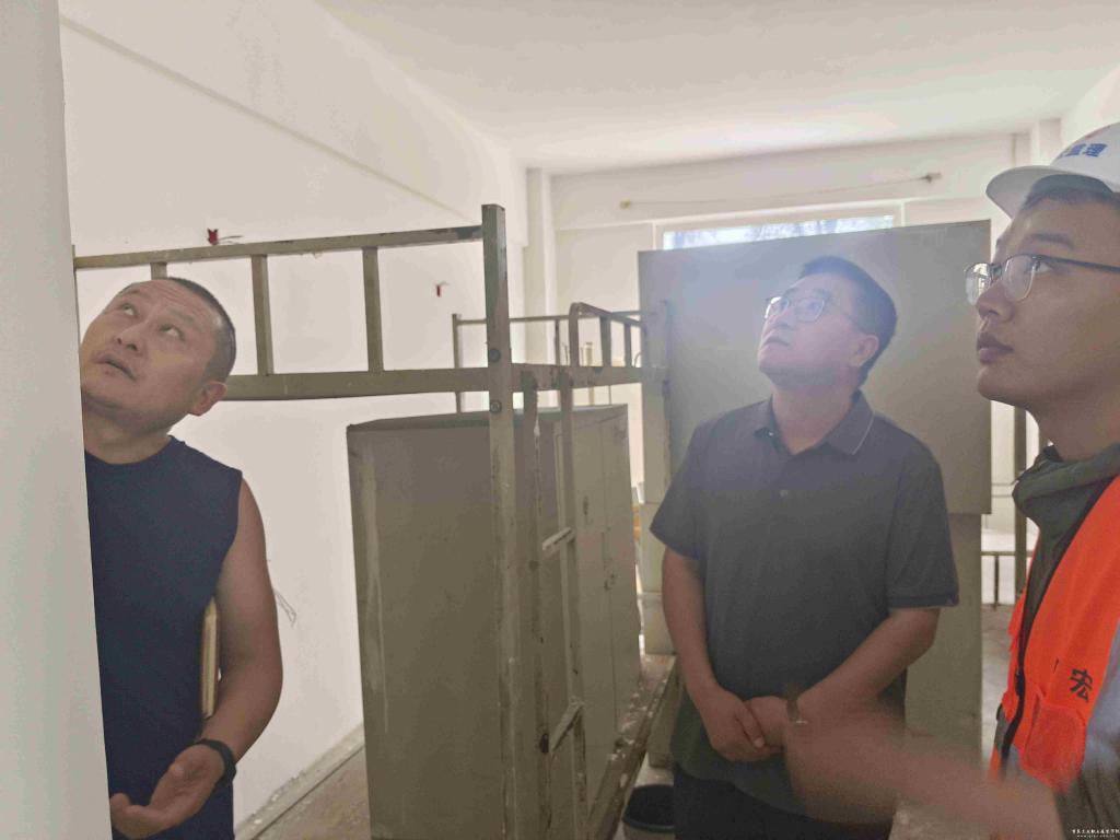 最后,胡森林检查了工程实训中心卫生间和楼道改造项目,细致查看了卫生条件改善与通行便利性。他特别指出,实训中心是实践教学重地,改造要突出实用性和安全性,为师生创造优良的实训与通行环境。